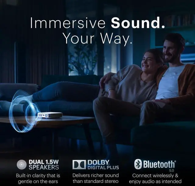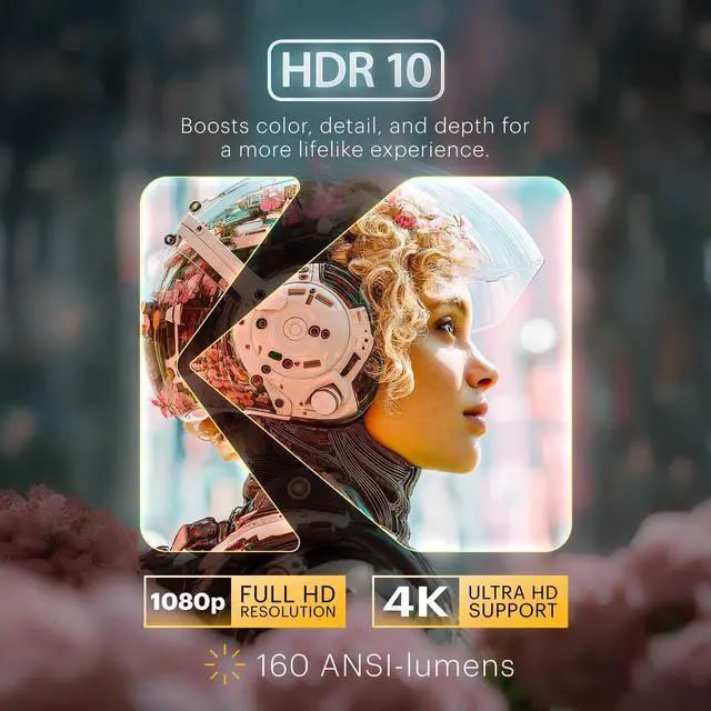 Powered by Google TV 11.0 OS, this mini projector lets you stream your favorite TV shows, movies, games, and more in stunning native 1080p resolution with 4K support. Enjoy crystal-clear images and vibrant colors thanks to its 150 ANSI lumens brightness and 400:1 contrast ratio.