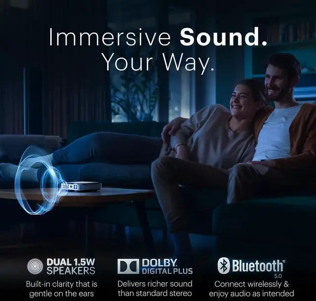 Powered by Google TV 11.0 OS, this mini projector lets you stream your favorite TV shows, movies, games, and more in stunning native 1080p resolution with 4K support. Enjoy crystal-clear images and vibrant colors thanks to its 150 ANSI lumens brightness and 400:1 contrast ratio.