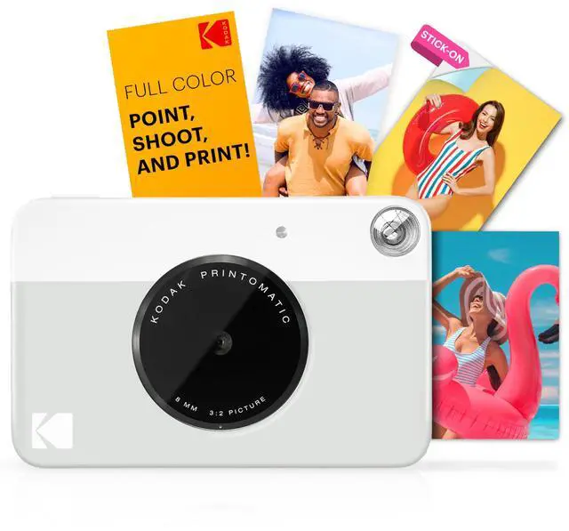 • ONE STOP PRINTING - The Kodak Printomatic camera instantly and automatically prints high-quality vibrant 2X3 photos. The camera uses Kodak Zink Photo Paper, so no ink cartridges, toners or film are needed. The photo prints are durable, water-resistant, tear resistant, smudge free and adhesive-backed. The Kodak Printomatic camera is fast, fun, and easy to use providing you with on-the-spot results