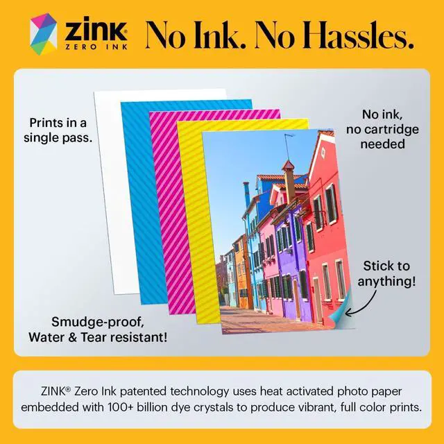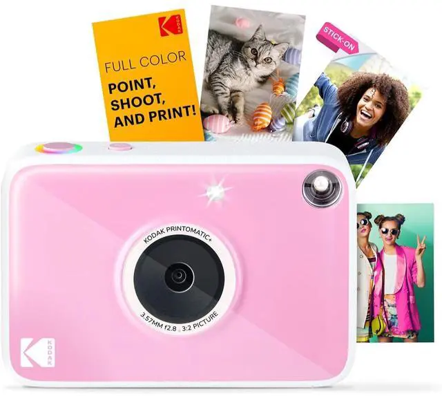 The Printomatic+ is the ultimate Kodak instant camera thats packed with everything you need and more! Combining convenience, creativity, and fun, this portable, easy-to-use instant print camera lets you capture every moment on the spotwhether youre at a party, on vacation, or just enjoying everyday adventures. The 10MP sensor of the instant picture camera ensures sharp, vibrant photos, while the lightning-fast print time means youll never miss a moment. Featuring a built-in battery, the instant digital camera its always ready for your next adventure, and the interactive LED status indicator keeps you informed when your portable camera is charged, processing, printing, or cooling down. With the camera instant print, simply point, shoot, and print, and watch your memories come to life on durable, smudge-proof, and tear-resistant sticky-backed photo paperno ink or toner needed. From special events to spontaneous fun, the Kodak instant film camera transforms fleeting moments into long-lasting memories, making it the perfect companion for capturing lifes best moments in vibrant color!