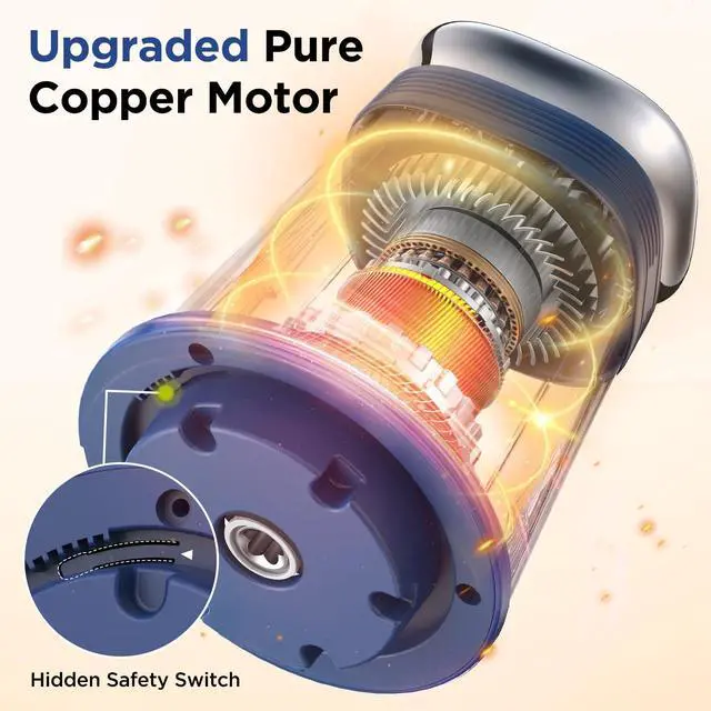 Safety--This food processor featuring a hidden safety switch that motor only works when power pod is installed properly. Equipped with overheating protection, it will automatically stop at high temperature. Please take off the blade protection carefully before installing.