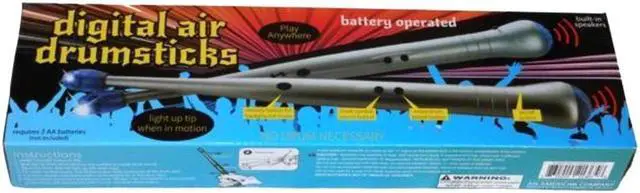Just pop in 4 'AA' batteries (not included) and you're ready to play. Directions for use are included for your convenience. These Digital Air Drumsticks come packaged in an individual box making them an ideal gift for the aspiring drummer in your life. Get ready to drum up some fun anytime anywhere! Adults
