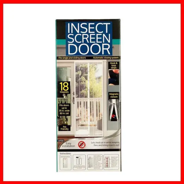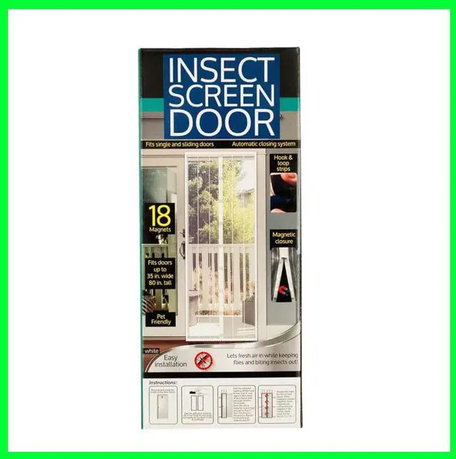 Screen Door: Invite refreshing breezes into your home while keeping flies and insects at bay with this Magnetic Screen Door. Effortlessly easy to install, it welcomes fresh air and blocks unwanted pests. Designed to fit single and sliding doors up to 80" tall and 35" wide, its durable white fine mesh screen features 18 powerful magnets for a seamless automatic closing system. Installation is a breeze with included hook-and-loop strips and clear instructions. Pet-friendly and practical, this screen door is a thoughtful gift idea for any home.