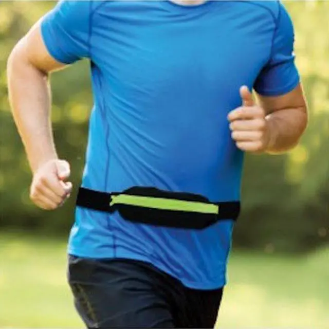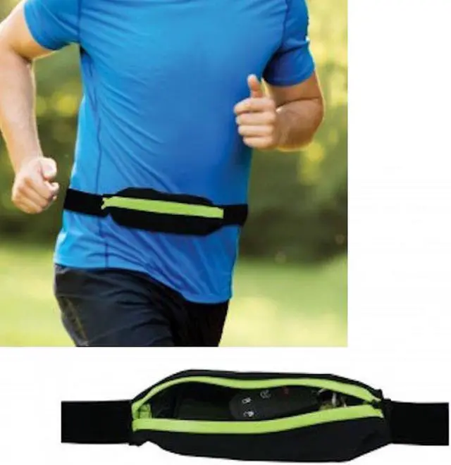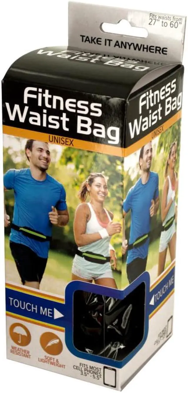Perfect for taking essentials like keys and money along with you on workouts, this Unisex Fitness Waist Bag features a slim, lightweight, weather resistant bag with a reflective yellow zipper for visibility and a comfortable, adjustable elastic belt. Fits waists from 27" to 60". Fits most 3.5" - 5.5" cell phones.