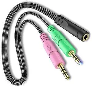 Headset Splitter Cable for PC 3.5mm Crystal-Nylon Braid Female to Dual 3.5mm TRS Male Headphone Mic Audio Y Splitter Cable CTIA Gaming Headset to PC Adapter - Matte Black 0.3M