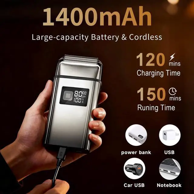 Up to 150 Min Runtime & Smart Digital Display: The led power level indicator exactly shows the amount of time left on the 18500 lithium ion battery without worrying about it running out mid-shave. mens electric shavers for face allows for 150 mins of continuous run time on a single 2 hrs charge.