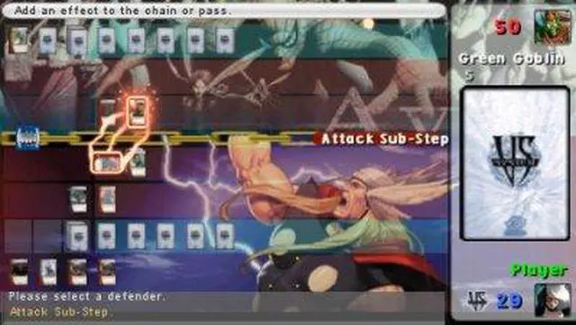 A game based on Upper Deck Entertainment's best-selling Marvel Trading Card Game. Marvel Trading Card Game features Marvel's complete roster of characters and lets players take their game online like never before with massive sanctioned tournaments, a virtual card shop and interoperability between the PSP system and PC versions of the game. Utilizing the popular Vs. System Trading Card Game from Upper Deck Entertainment, players can learn the basics of the game as a super hero or super villain in the game's single player campaign mode.