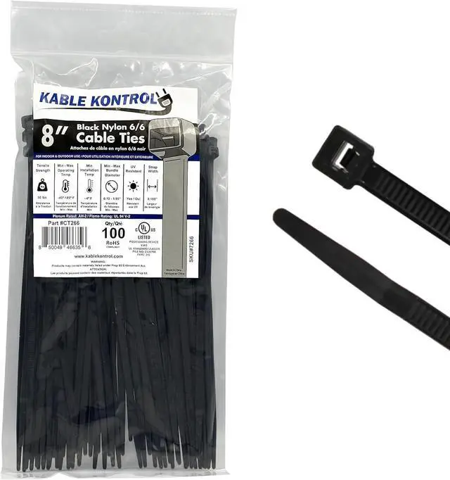 Dimensions: 8 Inch Long | 100 Pcs / Pack | Black | 50 Lbs. Tensile Strength | UV Resistant Nylon 6-6Indoor &