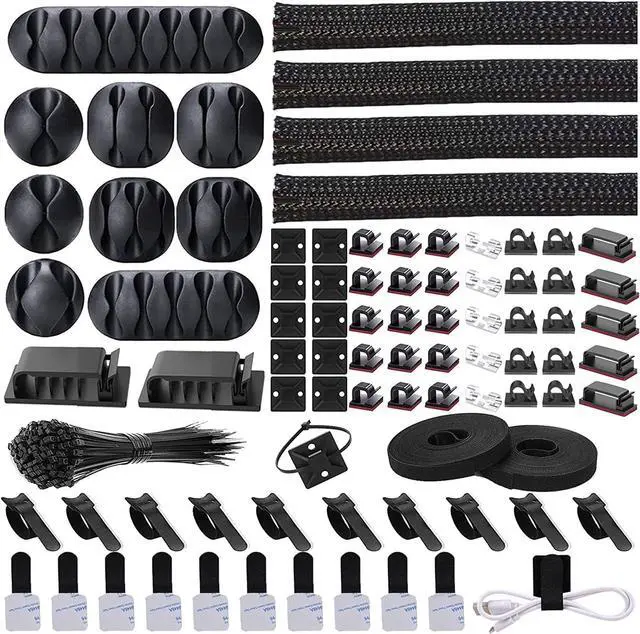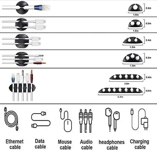 Material: Made of highly sturdy and quality materials the components included in this kit are built to las ensuring clutter free organization of your cords and cables for years to come. The included cable holders boast strong self-adhesive sticky pads ensuring they remain affixed to your desired surface at all times3 kinds of Black