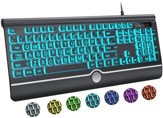 Backlit large print wired keyboard