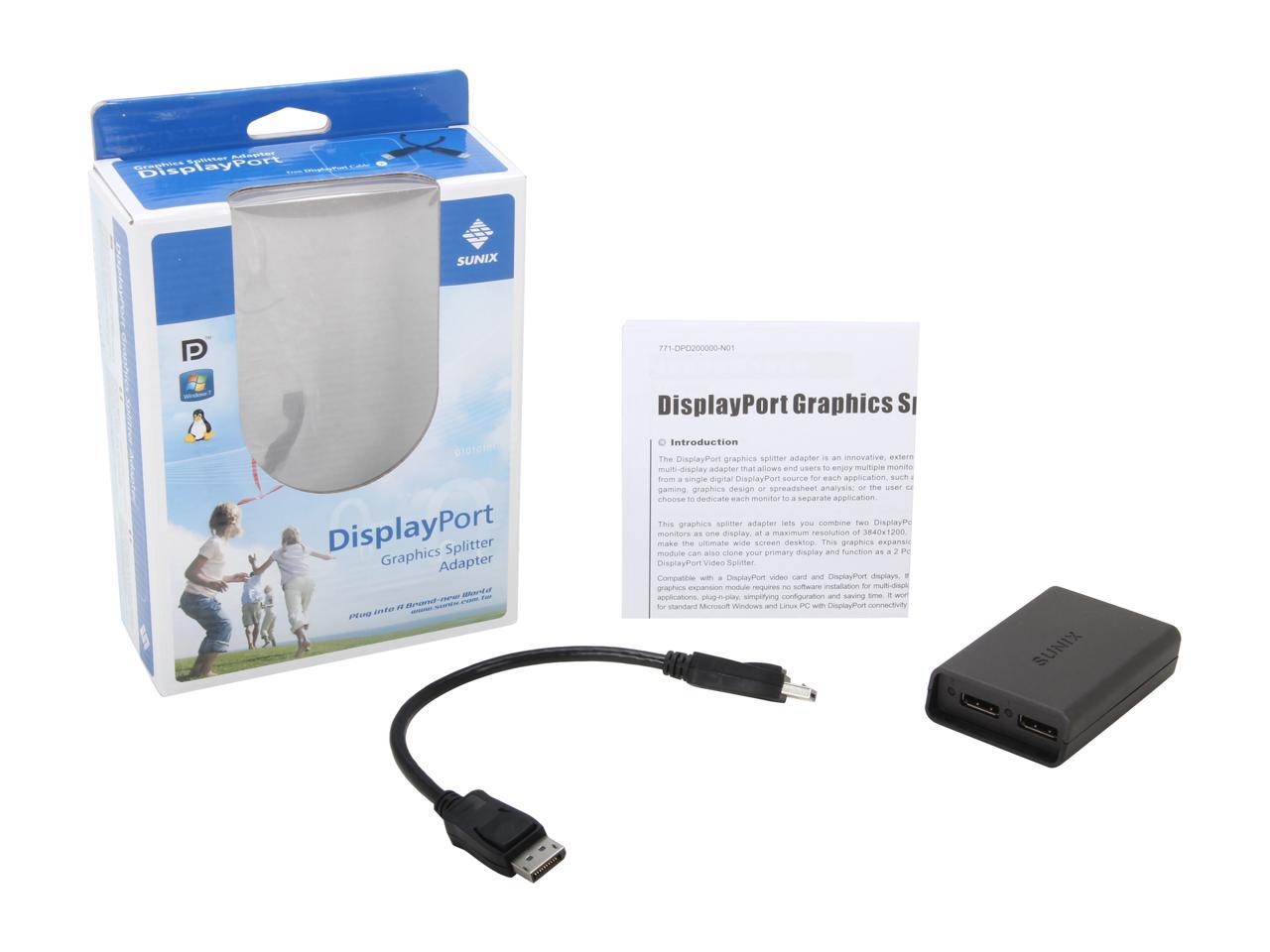 Koutech IO-DPD200 DisplayPort to 2-Port DisplayPort Graphics Splitter Adapter