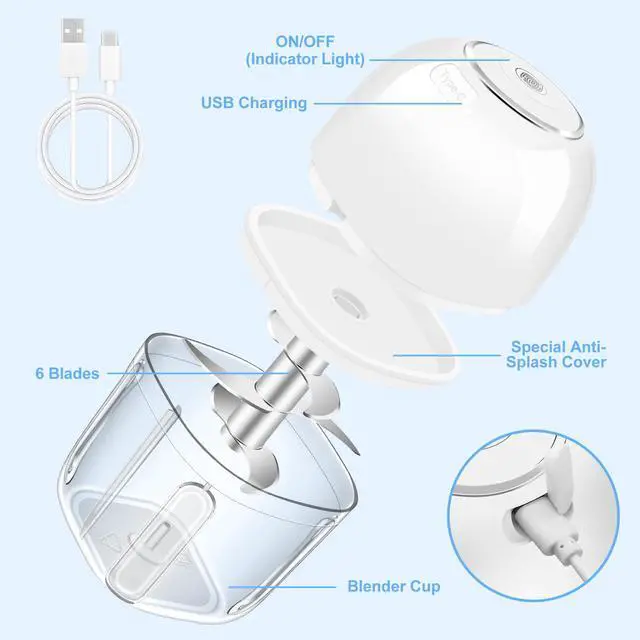 One-Button Operation: Simply place the food inside, secure the lid correctly, and press the button. The mini food chopper rechargeable shreds food within seconds. Its simple design allows even beginners to achieve meal prep resultssaving time and effort