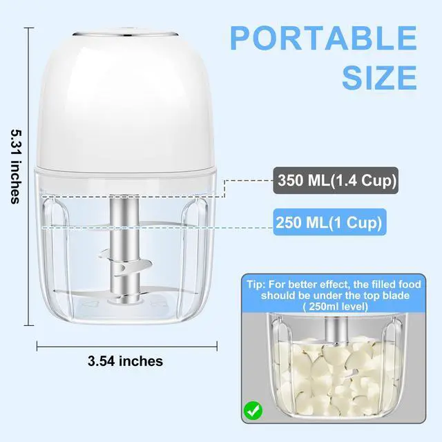 Electric Garlic Chopper, 1.4 Cup Mini Garlic Mincer Food Chopper Portable, Small Food Processor with USB Charging for Onion, Chili, Ginger, Veggie, Meat (350ML)