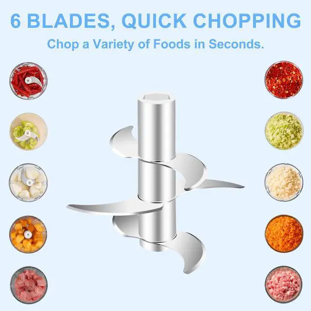 Strong Cutting Force: This mini garlic mincer is equipped with 6 sharp blades that effortlessly chop a variety of foods like onions, garlic, meat, peppers, and more, making it an indispensable kitchen helper
