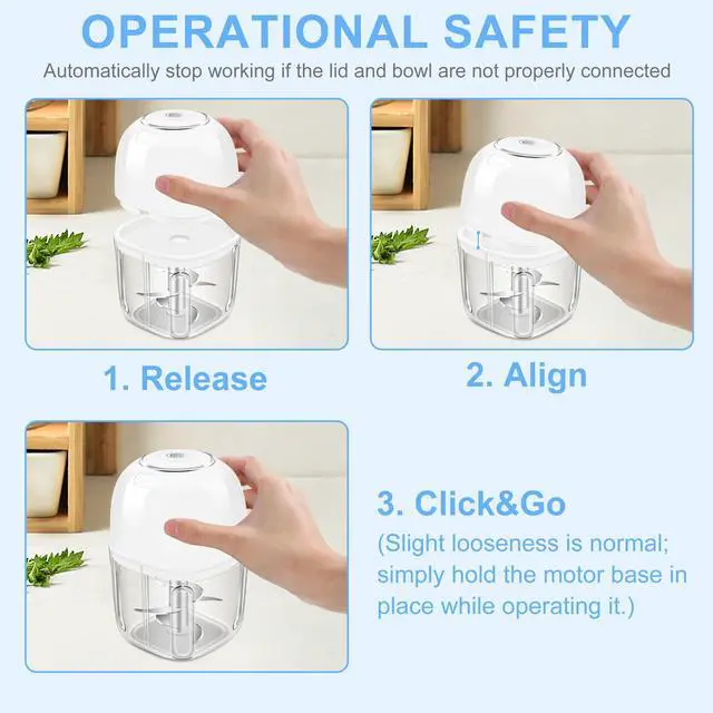 Safe Design: Our onion chopper electric small is made of high-quality PC material, ensuring safe and healthy food processing. The mini chopper will automatically stop working if the lid and bowl are not properly connected