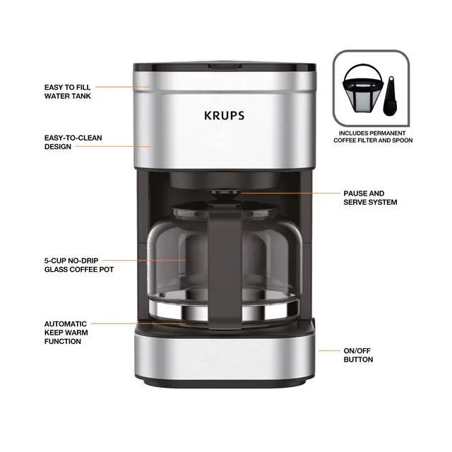 Effortless Cleaning: The small coffee maker's stainless steel exterior is easy to wipe clean while the glass carafe and permanent filter are dishwasher-safe. No-drip spout design prevents messy countertops, making maintenance a breeze.