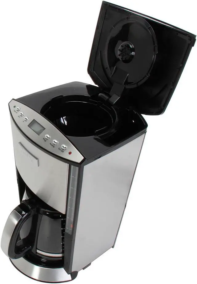 | Features | 13-cup capacity (65oz.) Brushed stainless Steel wrap + Glossy black plastic Glass carafe with metal insert on the handle 950 watts of power LCD screen with easy-to-read controls 2 water level indicators with red floating ball Keep warm for 1 hour Auto shut off after 2 hours Coffee aroma selection for more intense extraction or small batches |