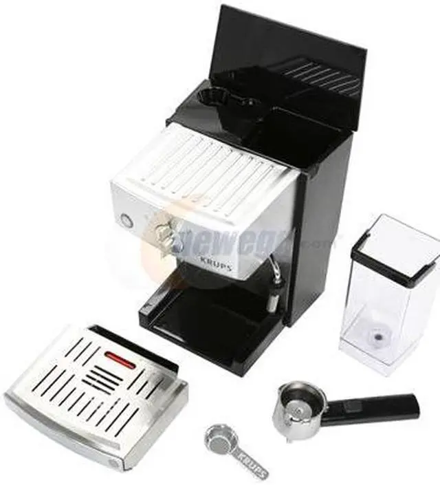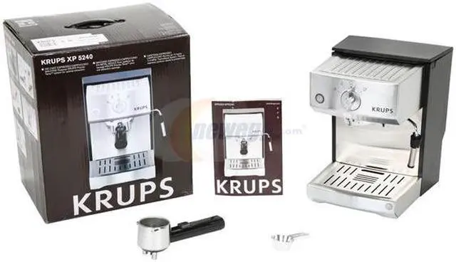 | Features | Krups Precise Tamp extracts the perfect cup every time for delicious espresso, cappucino, or latte. Preheats twice as fast thanks to the powerful 1400 watt thermoblock. Create delicious cappucino and latte with the new easy cleaning frothing nozzle. Redesigned steam nozzle locks in place and is easier to maintain. Universal filter holder with no mess cake ejection system. Filter holder fits for ground coffee, ESE or soft pods, and 1 or 2 cups. |