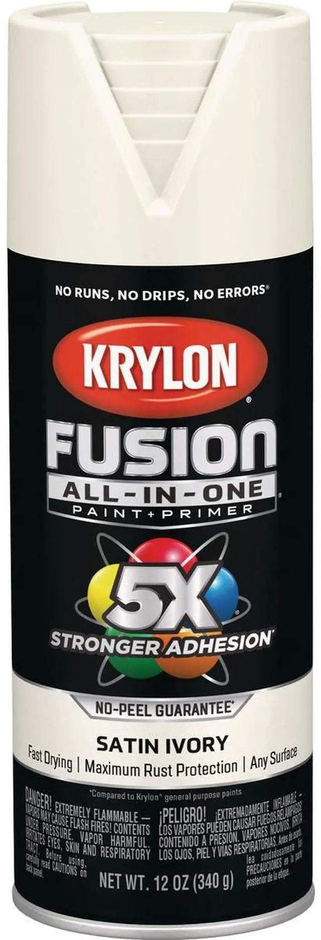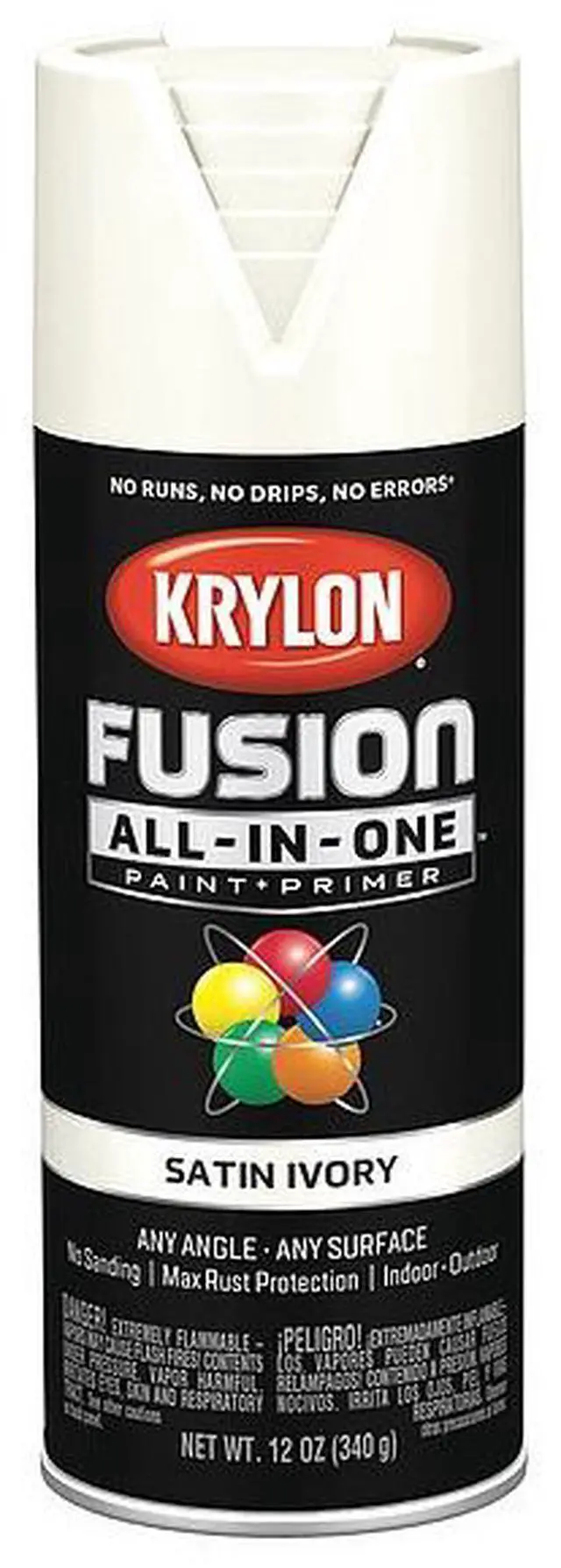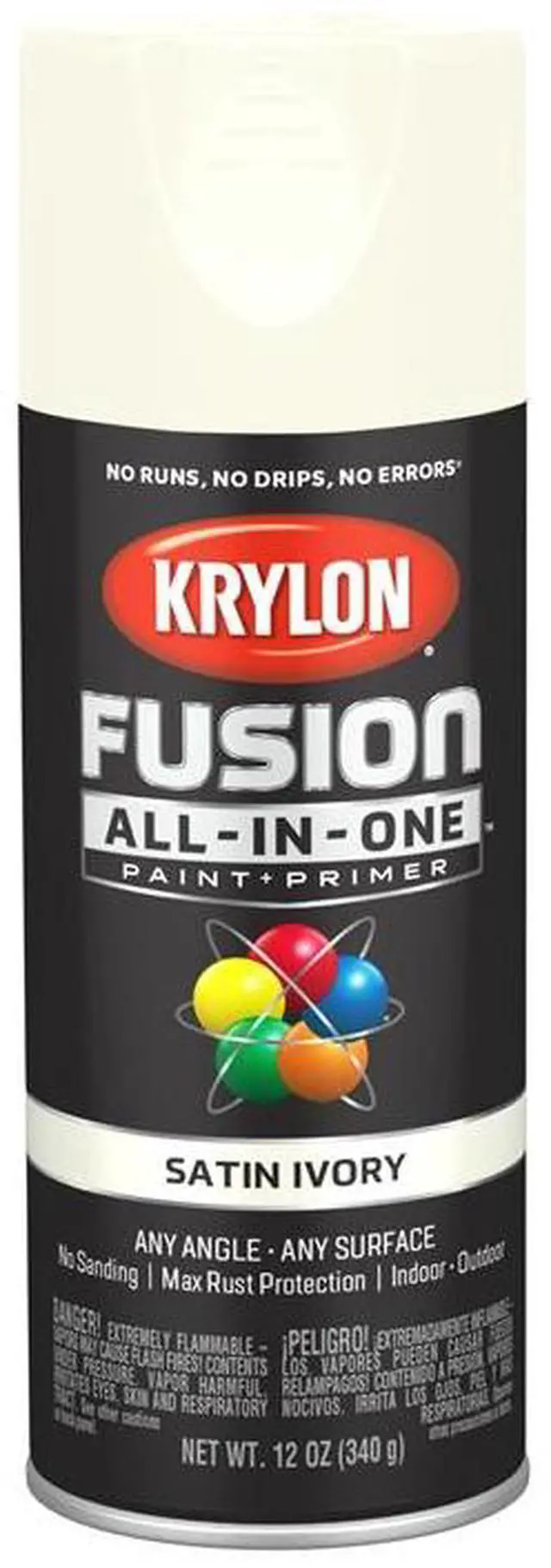 Revolutionary no-prep Fusion All-In-One spray paint requires no sanding or priming. Bonds easily to most plastics, PVC, resin, and more. Dries to the touch in 25 minutes, dries to handle in 2 hours, and is fully chip resistant after 7 days. Maximum rust protection for indoor/outdoor use. Features EZ Touch 360 degree dial spray tip.