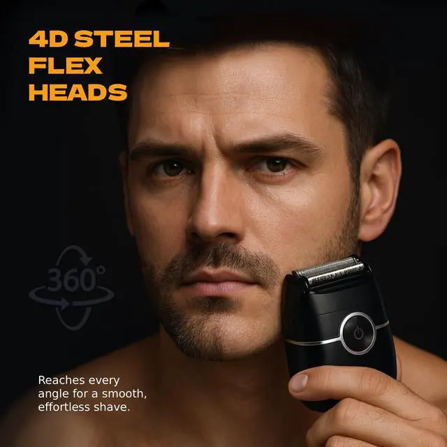 SMOOTH & COMFORTABLE SHAVE 4D floating foil head adapts to face and neck contours, reducing irritation and delivering a clean, close shave even on sensitive skin.