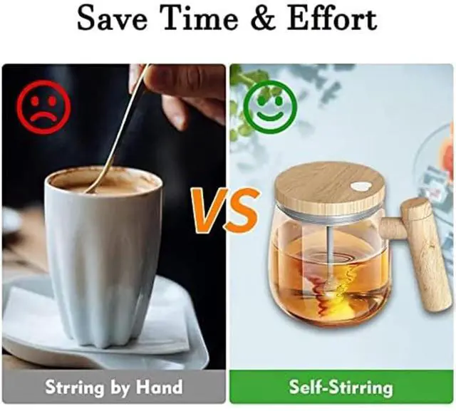 - Are you still worried about having no time to make coffee? Or are you such a person that likes to drink coffee but doesn't want to make coffee by yourself? Now, you don't need to think about these problems. Our electric self stirring coffee mug will solve these problems. Save your time and free your hands. You can use your spare time to do something else.