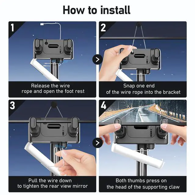 - Durable & High-Quality Build: Crafted from premium materials, this phone mount is built to last, providing long-term reliability and sturdiness for your vehicle, with a design that ensures your phone stays securely in place during every travel.Note:After installing the rearview mirror mount, please make sure the steel wire rope is securely fastened.