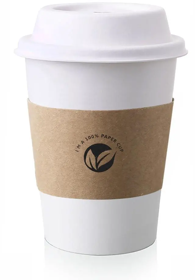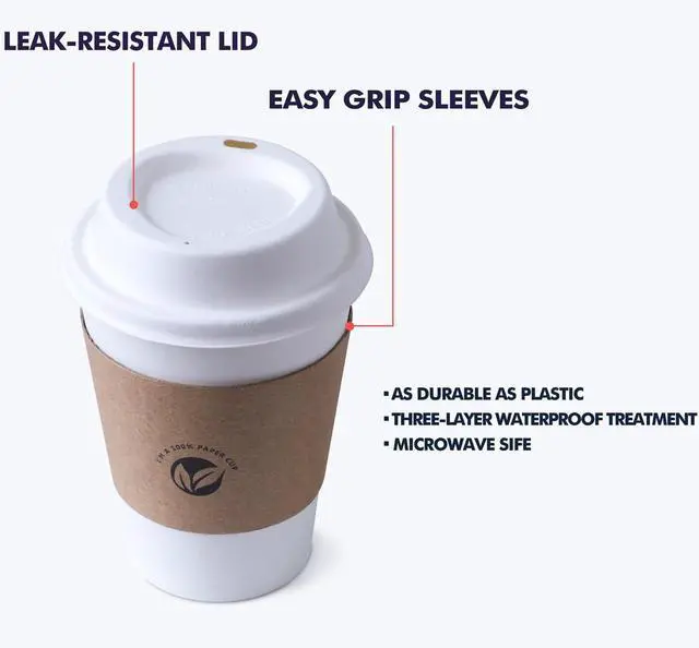 ![Alt view image 4 of 7 - [50 pack] 12 oz Compostable Coffee Cups with Lids and Kraft Sleeves, Eco Friendly Disposable White Paper Cups Combo for Hot Beverage](https://c1.neweggimages.com/productimage/nb640/C6EMD26042209C9757B.jpg)