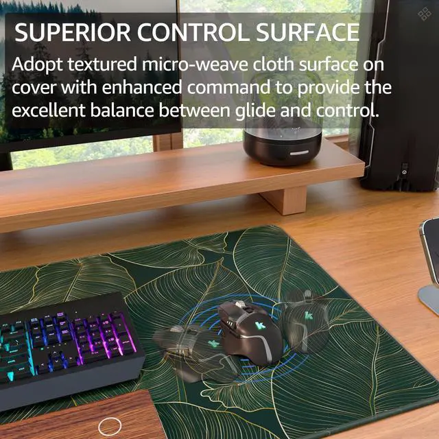 • Superior Control Surface: extended mouse pad adopts textured micro-weave cloth surface on cover with enhanced command to provide the excellent balance between glide and control. The performance-tuned surface optimizes mouse tracking accuracy for both optical and laser sensors.