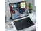 The keyboard size: 9.84 x 5.9 x 0.24 inch, weight: 6.35 ounce/0.4 pounds.Perfect fit for iPad and tablets.