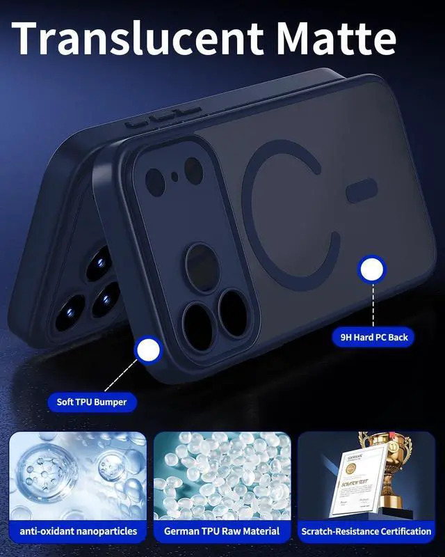 ![Main image of Magnetic for iPhone 17 Pro Max Case [Compatible with MagSafe][Military Grade Drop Protection][Anti-Fingerprint] Translucent Matte Protective Shockproof Phone Case with Camera Cover Blue](https://c1.neweggimages.com/productimage/nb640/C5JMD2603050CTE5R14.jpg)