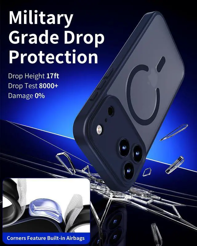 ![Alt view image 6 of 6 - Magnetic for iPhone 17 Pro Max Case [Compatible with MagSafe][Military Grade Drop Protection][Anti-Fingerprint] Translucent Matte Protective Shockproof Phone Case with Camera Cover Blue](https://c1.neweggimages.com/productimage/nb640/C5JMD2603050CTG2DAD.jpg)