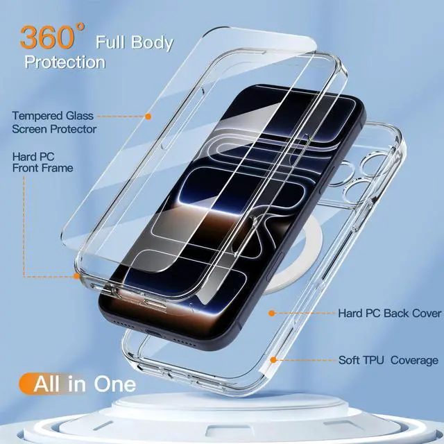Multi-Protection: Dual-layer construction combines soft TPU frame with hard PC bumper and back, 4 corners crafted with impact-absorbed airbags and bubble free 9H tempered glass screen protectors can provide best possible protection against drops up to 17FTand scratches.