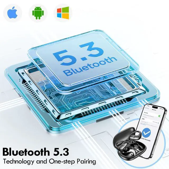 Wireless Earbuds Bluetooth Headphones Sport,Over Ear Buds with Deep Bass Sound,60Hrs Playtime Earphones Redesigned Comfort Fit with Earhooks for Running,Meeting,Workout-Black
