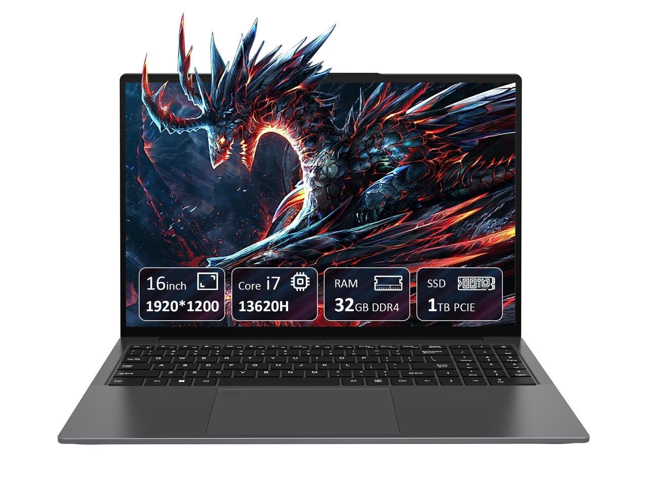 KurieTim 16" Gaming Laptop i7-13620H(10C/16T, 3.6-4.9GHz), 32GB RAM 1TB PCIe SSD Laptop Computer with Backlit KB, Fingerprint Unlock, Numeric Keypad
