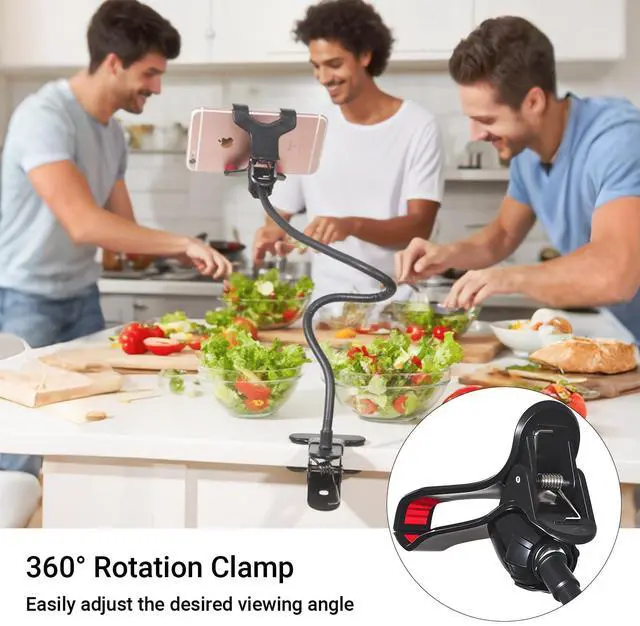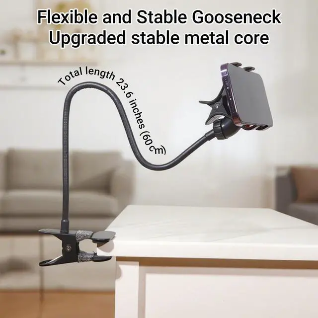 360 rotation clip holder and flexible gooseneck arm can help you freely adjust this iPhone holder to the best viewing angle you want.