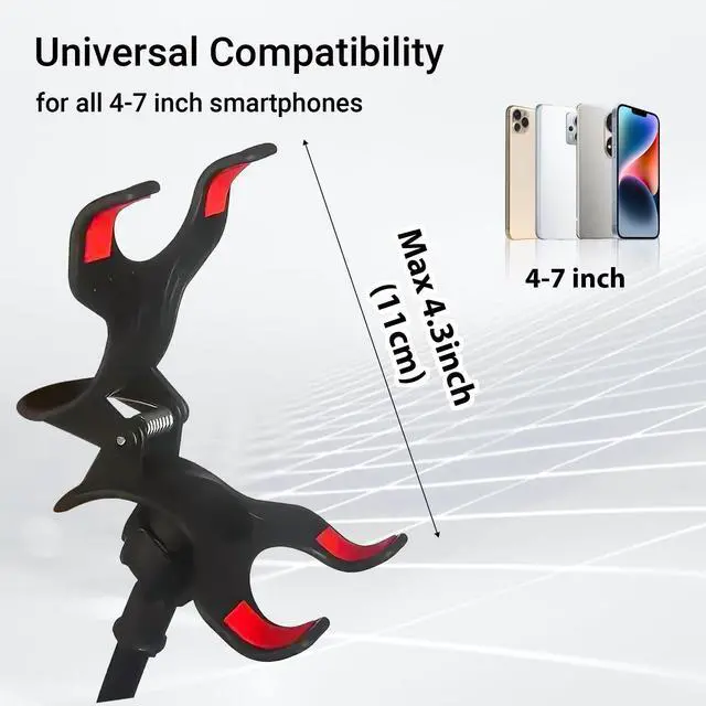 The clip holder with protective anti-slip rubber pads on both sides are able to firmly hold your phone and prevent it from falling down, providing you with maximum support.