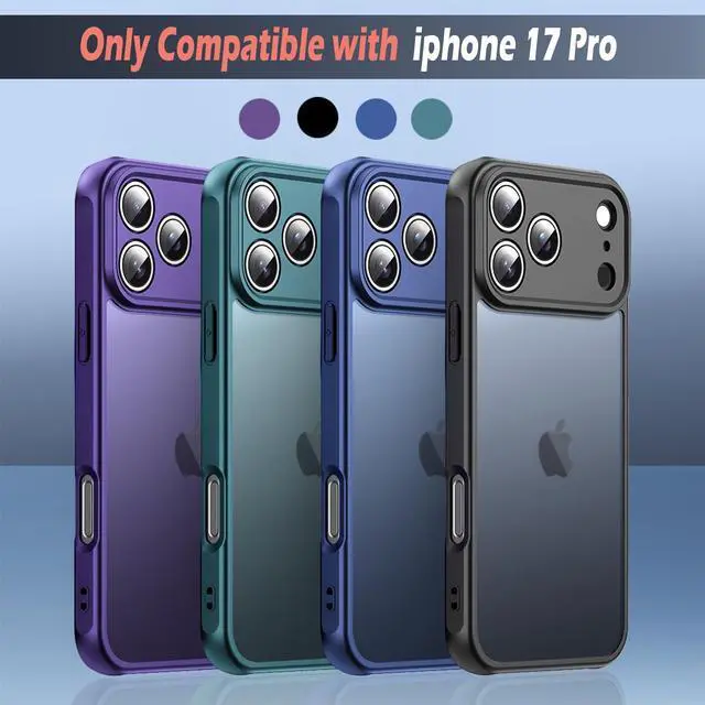 Compatible with iphone 17 Pro Case, Thin Anti-Scratch PC Matte Translucent Back & Flexible TPU Shockproof Protection 17Pro Phone Cover case for Apple iphone17Pro