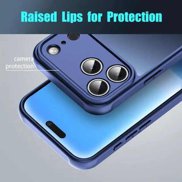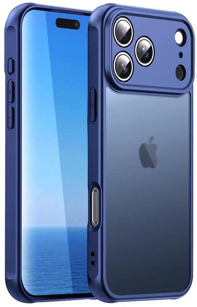 Compatible with iPhone 17 Pro Case, Thin Anti-Scratch PC Matte Translucent Back & Flexible TPU Shockproof Protection 17Pro Phone Cover case for Apple iphone17Pro (Blue)