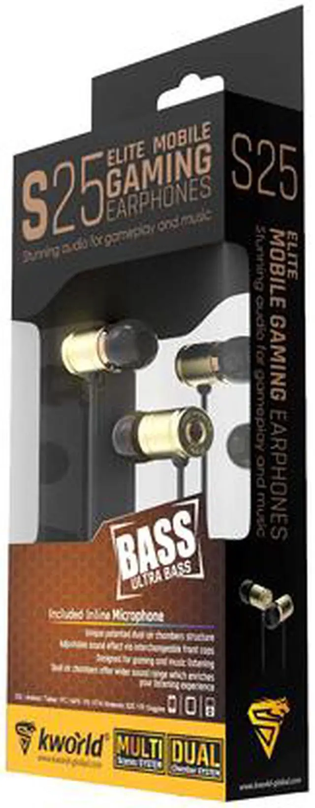 Fitted with 9mm drivers and exclusive dual-air chambers, the KWORLD S25 Elite earphones deliver rich, full-range sound with 20Hz-20KHz frequency response which bring your music and gaming to life. An intelligent remote puts volume adjustment and call management at your fingertips. When it comes to comfort, the S25 scores highly with lightweight design, and interchangeable silicone tips in three size (L, M, S). Other features include gold-plated connection for solid connection and accurate, distortion-free signal transfer, strong & durable braided cable, as well as silicone cable tie for cable organization.