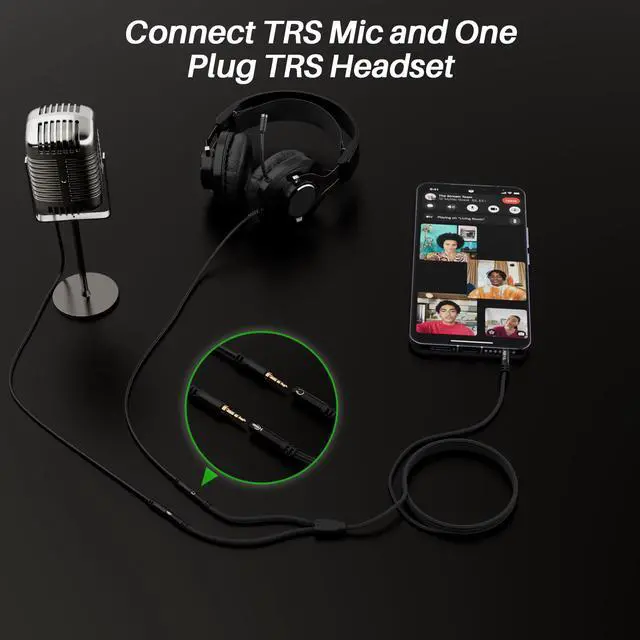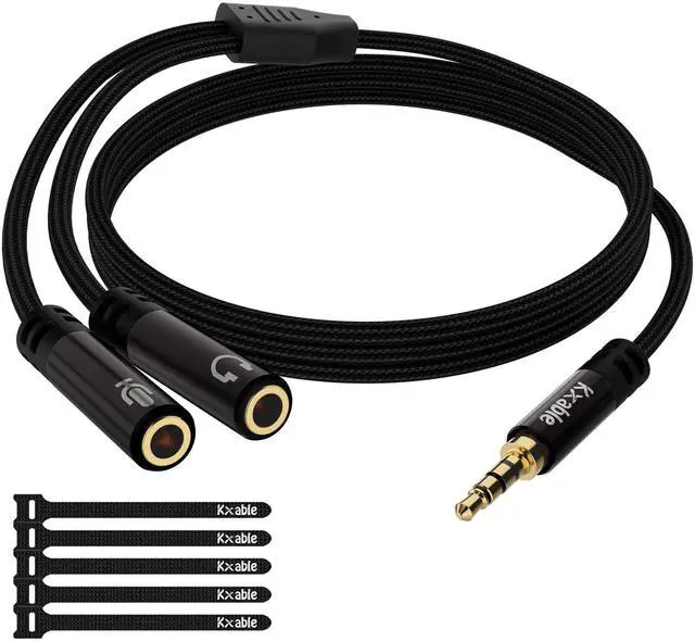 Headphone Mic Splitter 2 Way : This 1/8'' audio cable can connect headphones with separate headphone (CTIA) and microphone (TRRS) jacks to a computer, tablet or smartphone, solving the problem of headphones and microphone not being able to connect to a computer with only one 3.5mm headphone jack.