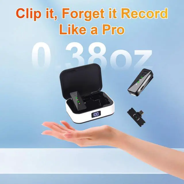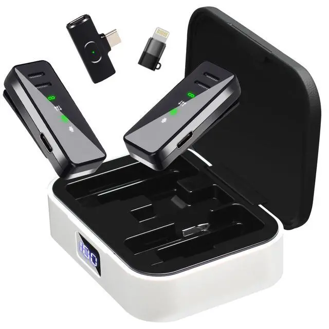 Elevate your audio recording experience with this wireless lavalier microphone, designed for seamless compatibility with iPhone, iPad, and Android devices. The clip-on lapel mic features three distinct noise reduction modes to capture crystal-clear sound in various environments. Perfect for content creators, the microphone comes with a convenient USB-C charging case for extended use. Whether you're live streaming, recording videos, conducting interviews, or participating in virtual meetings, this versatile microphone delivers professional-quality audio. The compact and lightweight design makes it easy to carry and attach to clothing, while the wireless functionality gives you freedom of movement during recording sessions. The intuitive controls and straightforward setup process ensure you can start recording high-quality audio right away, making it an essential tool for vloggers, educators, and professionals alike.