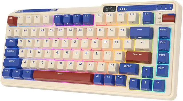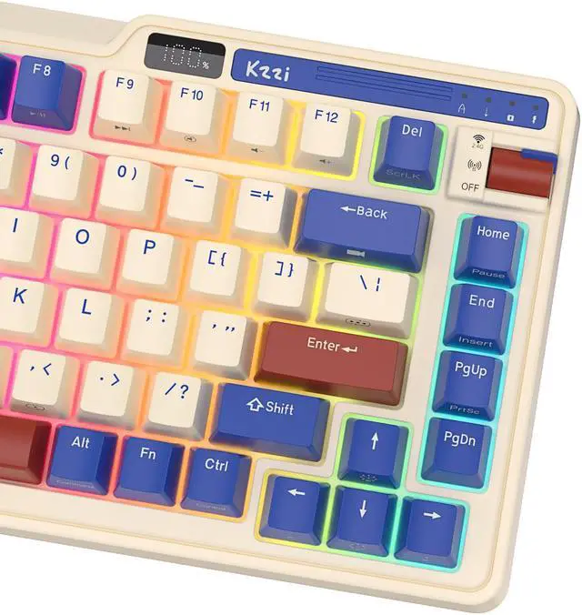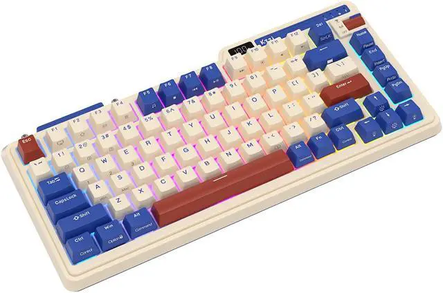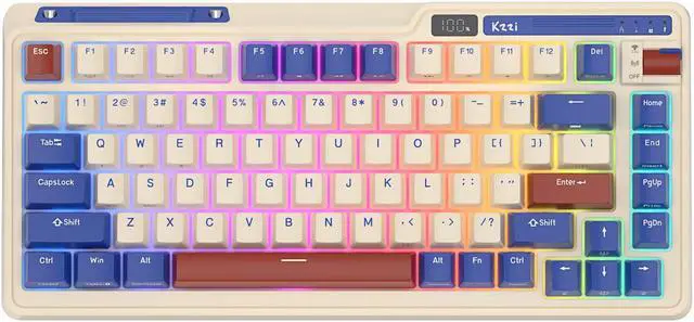 3 Modes Connection - This wireless mechanical keyboard supports tri-mode connectivity, USB Type-C wired mode, stable 2.4GH z and low-latency BT 5.0 wireless modes, which can be easily toggled with the sensitive knob.