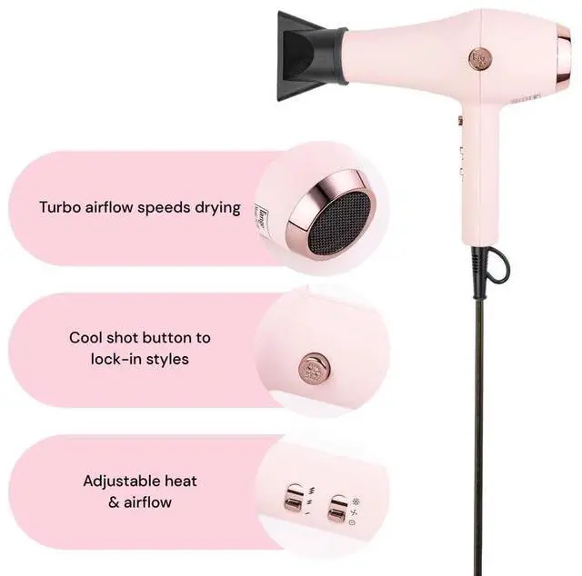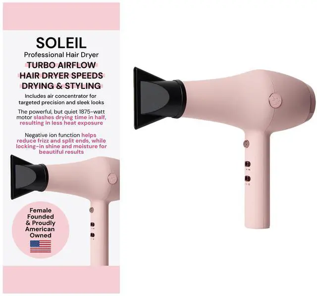Create the luxurious salon-style blowouts youve come to love from the comfort of your own home with Lange Soleil Professional Hair Dryer. Good for all hair types, its 88°F - 213°F temperature range also comes with a cool shot button to lock in your style. Ionic technology helps reduce frizz and split ends, while locking in shine and moisture. It includes a detachable heat concentrator for detailed styling. With a lightweight AC motor and turbo airflow speed, youll dry your hair fast and effortlessly.