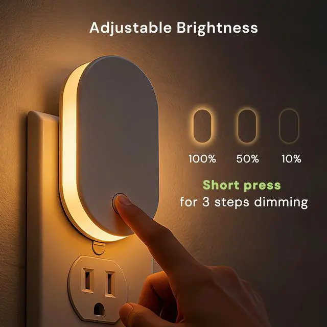 Dusk to Dawn Sensor Night Lightthis nightlight plugs in wall automatically activates at dusk and deactivates at dawn. It features a convenient memory function that recalls your last brightness setting upon restart. Note that when manually turned off via long press, the light sensor is deactivated to give you full control