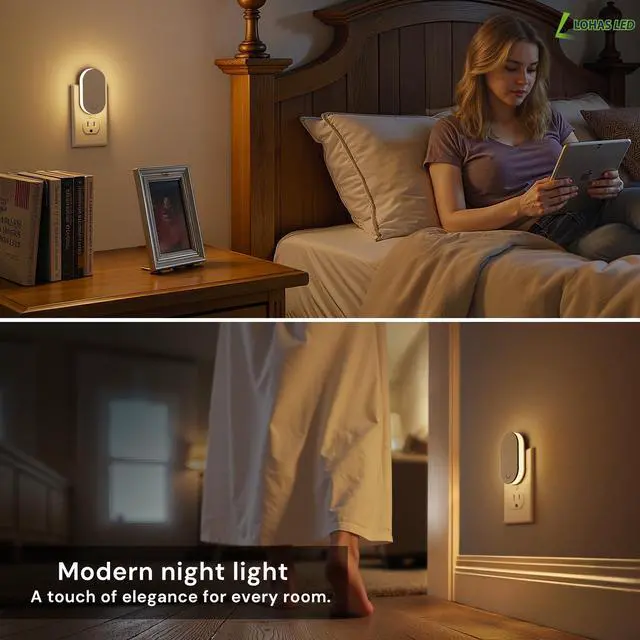 Foldable Plug in Night LightEngineered with a convenient 90-degree foldable plug, this night lights plug into wall adapter fits flush against the outlet, saving space and preventing accidental bumps. Its low-profile design is perfect for tight spots like behind furniture or as a bathroom night light where space is at a premium