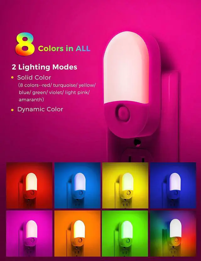 ![Alt view image 7 of 7 - Night Light for Kids [2 Pack], 8-Color Changing Night Lights Plug into Wall, RGB LED Nightlights, Nightlight with Light Sensor, Cute Night Light for Bathroom Decor, Children Room,Gift](https://c1.neweggimages.com/productimage/nb640/C67GD2604210Z2W8183.jpg)