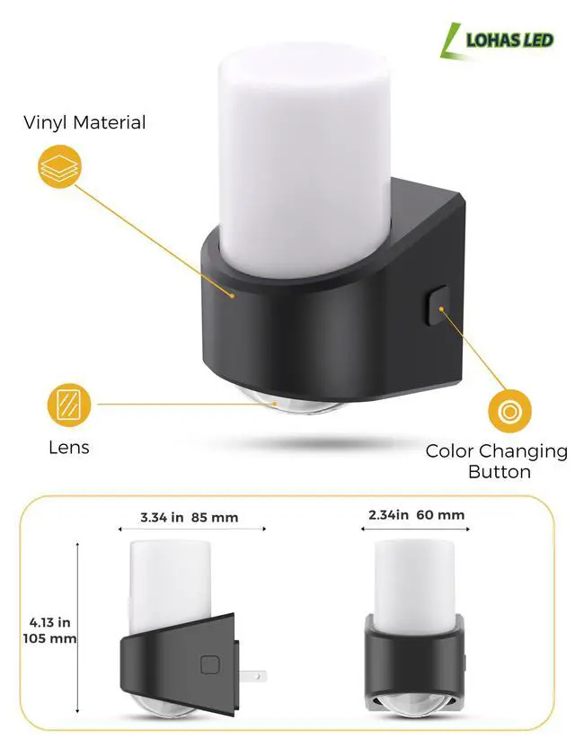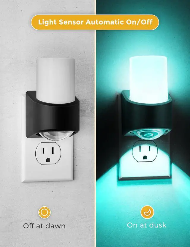 Auto-Sensing Nightlight -- With dusk to dawn light sensor built in, it will automatically turn off in 2 seconds when there is plenty of light and turn on when the environment is dim
