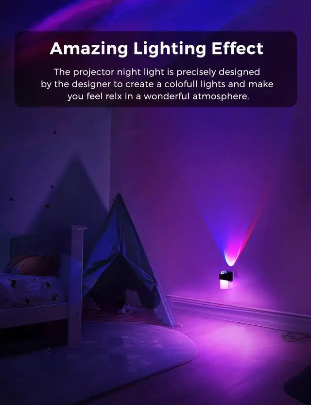 Amazing Lighting Effect - When you switch to dynamic mode, it will will emit a very charming light, which is very suitable for use in game rooms, movie rooms, kids night light projector