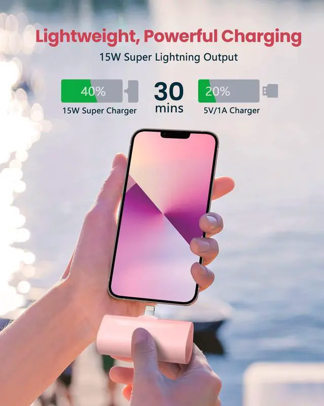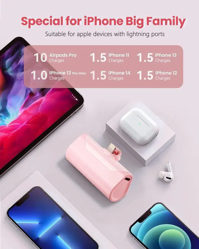 | Whats in the box | Nice-made outer box *1, Pink Small portable iphone charger *1, Type-c cable for input*1, User Manual*1 |