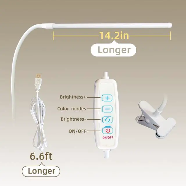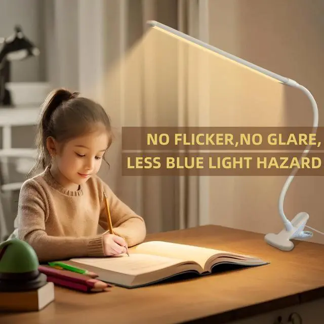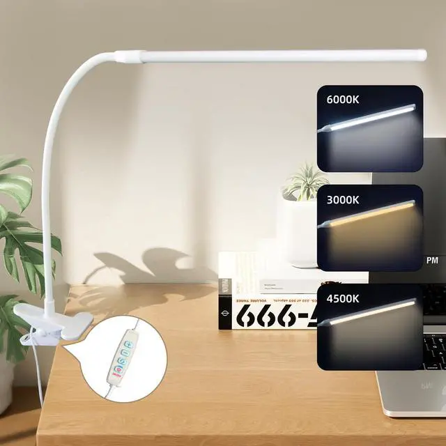 Desk Lamp with Clamp, Long Flexible Arm Clip on Lamp for Kids Reading in Bed, Easel, Make Up, Sewing Craft, Nail Tech Lamp, 3 Color Modes & 10 Brightness Levels